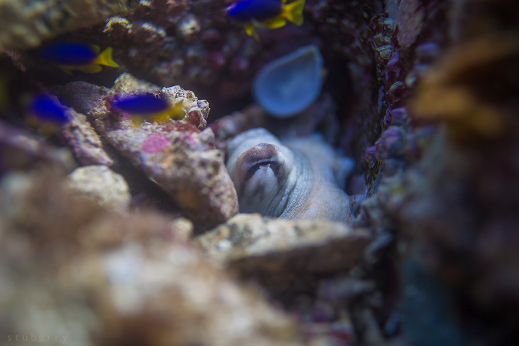You can interact with and observe an intriguing intelligence well beyond our current understanding of our own. To be able to witness an octopus tending to her surrounding environment, in full view and neutral skin mode, is boss level in the friendship game.